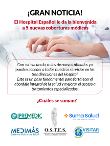 El Hospital ha incorporado a su cartera de servicios a importantes entidades, brindando ahora cobertura en sus tres direcciones a los afiliados de: