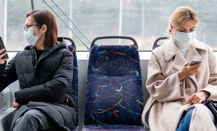 • Compartir viaje en colectivo a menos de 2 asientos de distancia.