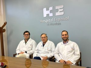 Los doctores Roberto Welti (Jefe del Servicio de Cirugía Cardiovascular, Tórax y Trasplante), Federico Welti (Cirujano Cardiovascular) y Nicolás Renna (Jefe de Unidad Coronaria) dieron detalles de esta operación y cómo se trabaja en el Hospital Español.